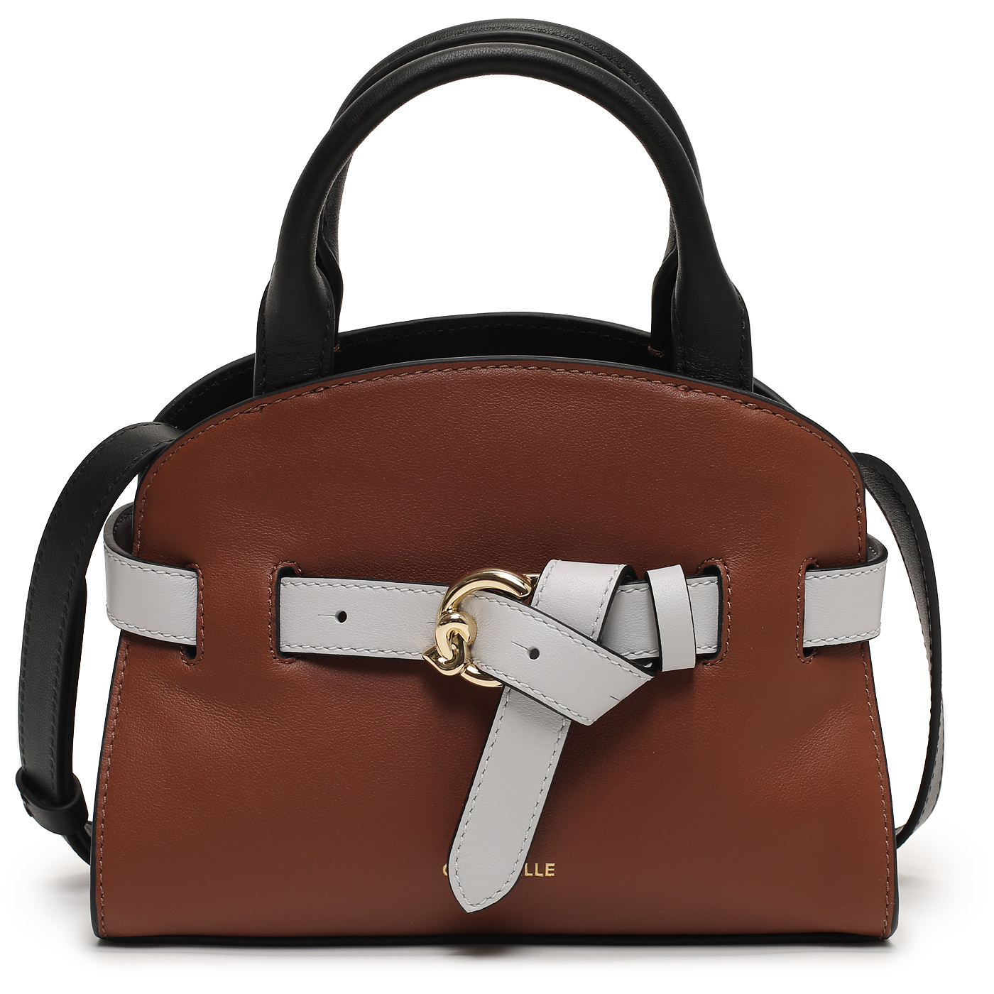 Кожаная сумка Coccinelle CoccinelleSabine Tricolor TLC 18 03 01 716_cognac/noir/snow_pc - 2000558795135 коричневый натуральная кожа 22 x 16 x 9 Цена 35175 руб. купить в интернет-магазине PanChemodan.ru в Ростове-на-Дону